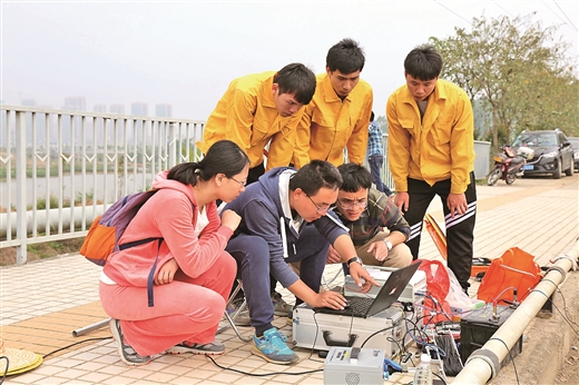廣西建設職業技術學院師生在自治區高職示范特色專業及實訓基地開展橋梁檢測實訓教學。