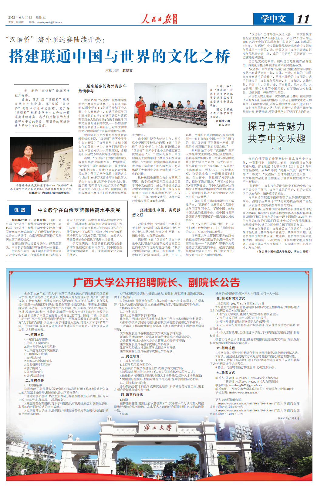 6月10日,人民日報海外版發(fā)布《廣西大學(xué)公開招聘院長、副院長公告》。全文如下: