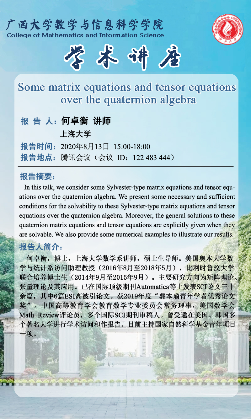 下一條:數(shù)信學(xué)院學(xué)術(shù)海報(bào):《Hilbert 空間中的稀疏表示系列講座》兩場(chǎng)