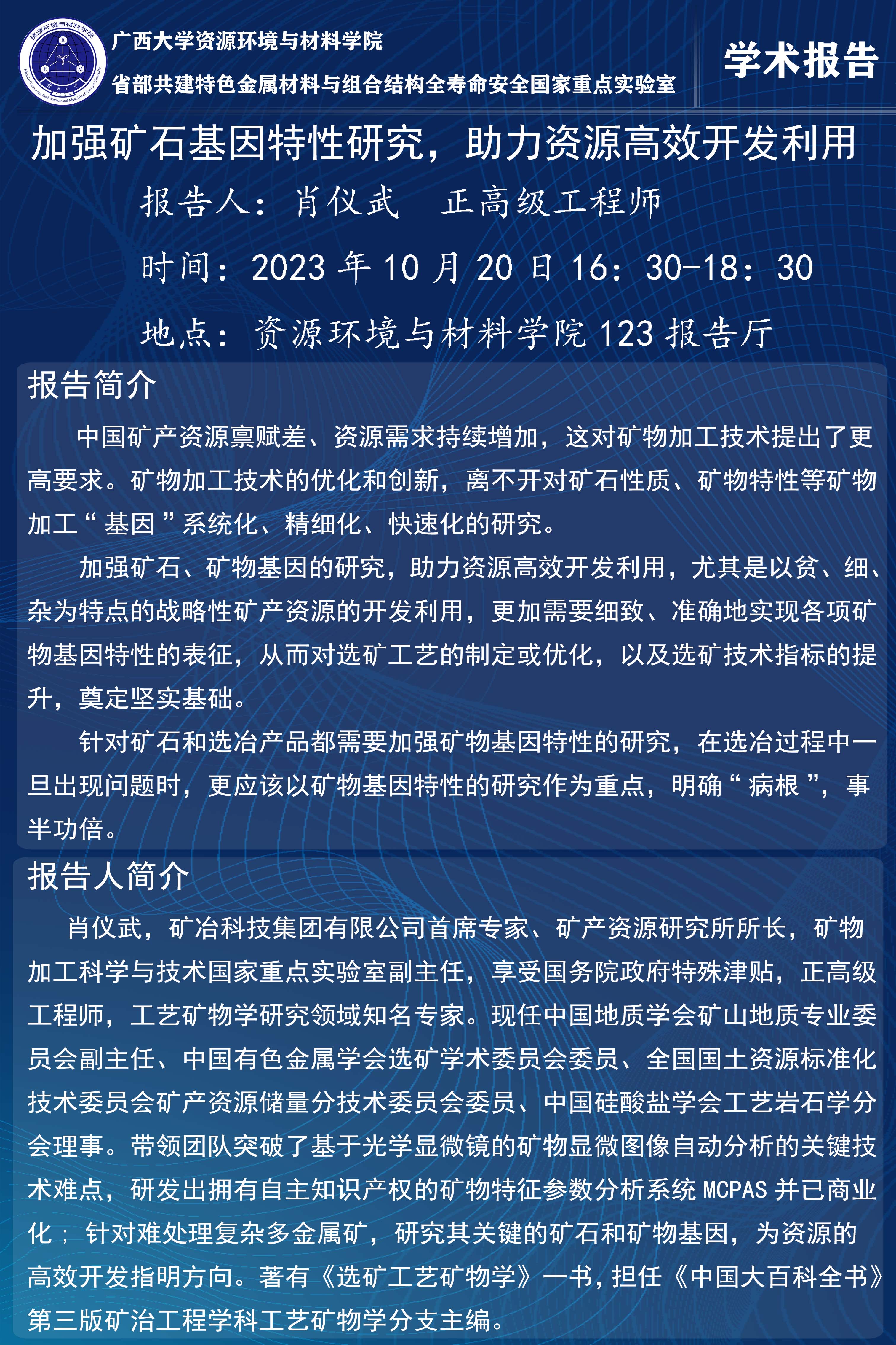 資源環境與材料學院學術報告 :加強礦石基因特性研究,助力資源高效開發利用