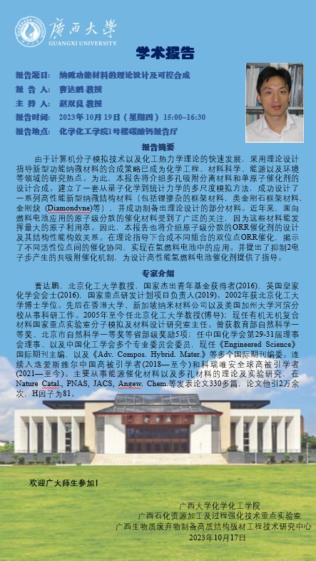 化學化工學院學術報告:納微功能材料的理論設計及可控合成