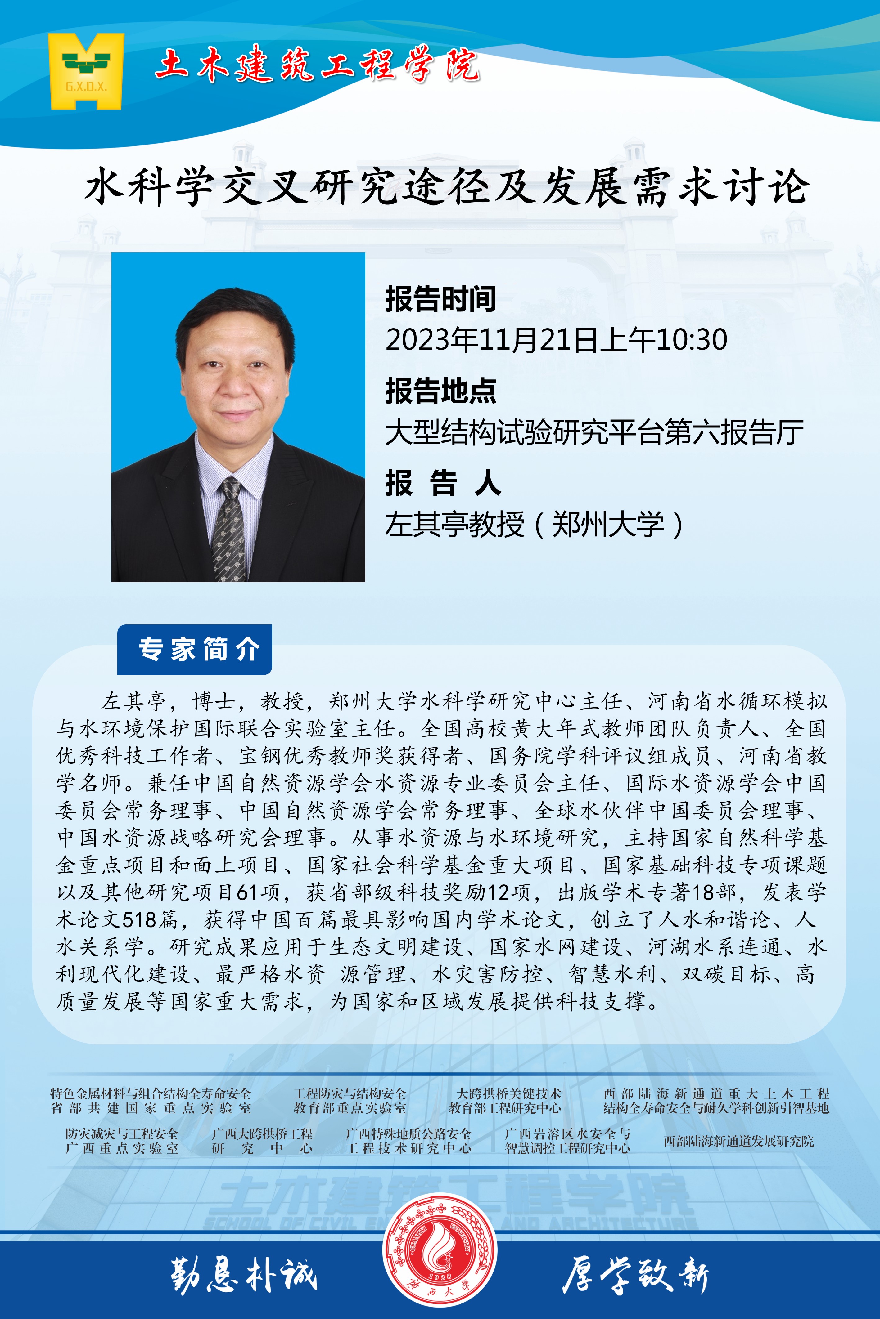 主講人 左其亭教授(鄭州大學) 地址 大型結構試驗研究平臺第六報告廳