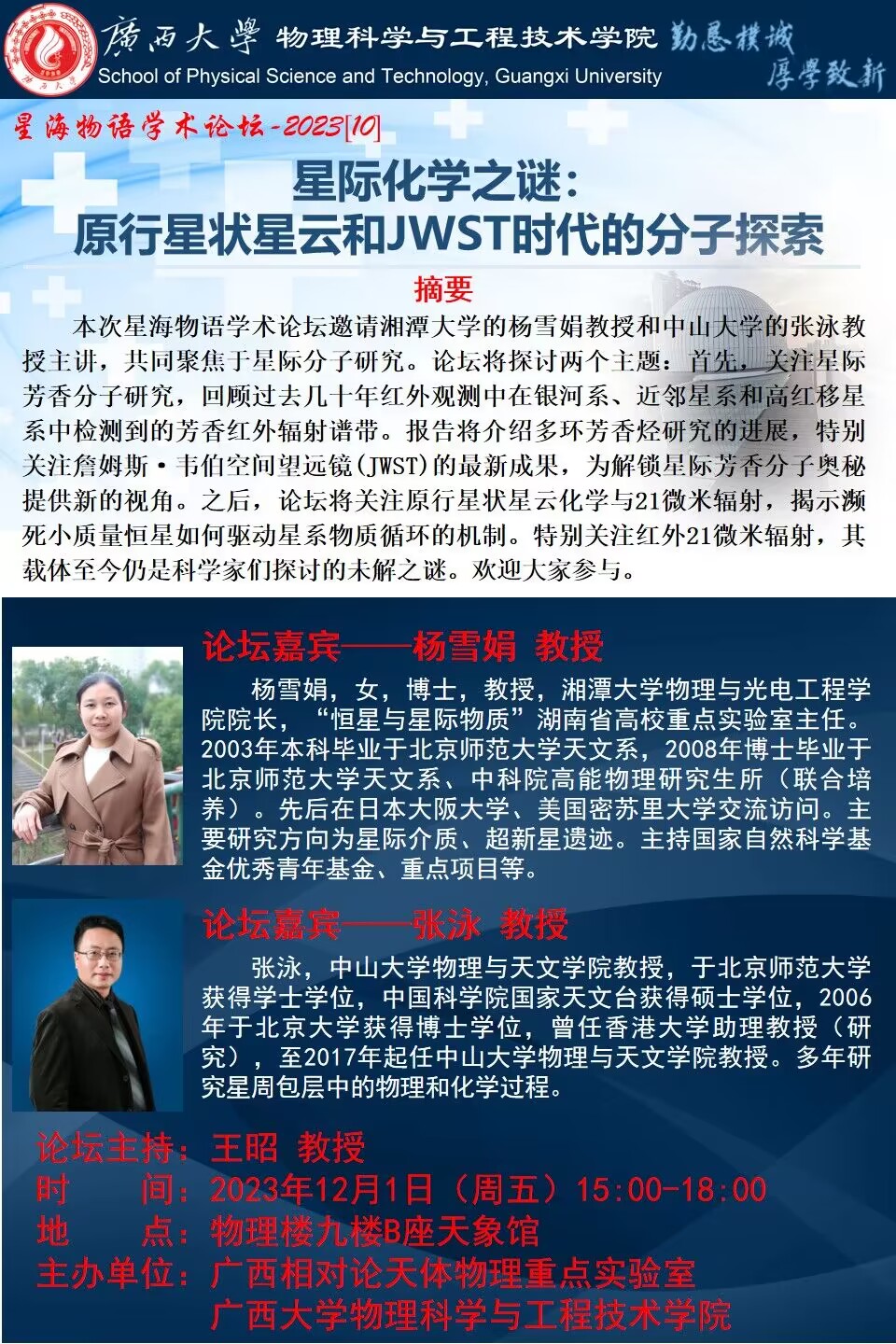 上一條:物理學(xué)院2023年學(xué)術(shù)報(bào)告系列之35:在脈沖星測(cè)時(shí)陣列中尋找引力波背景