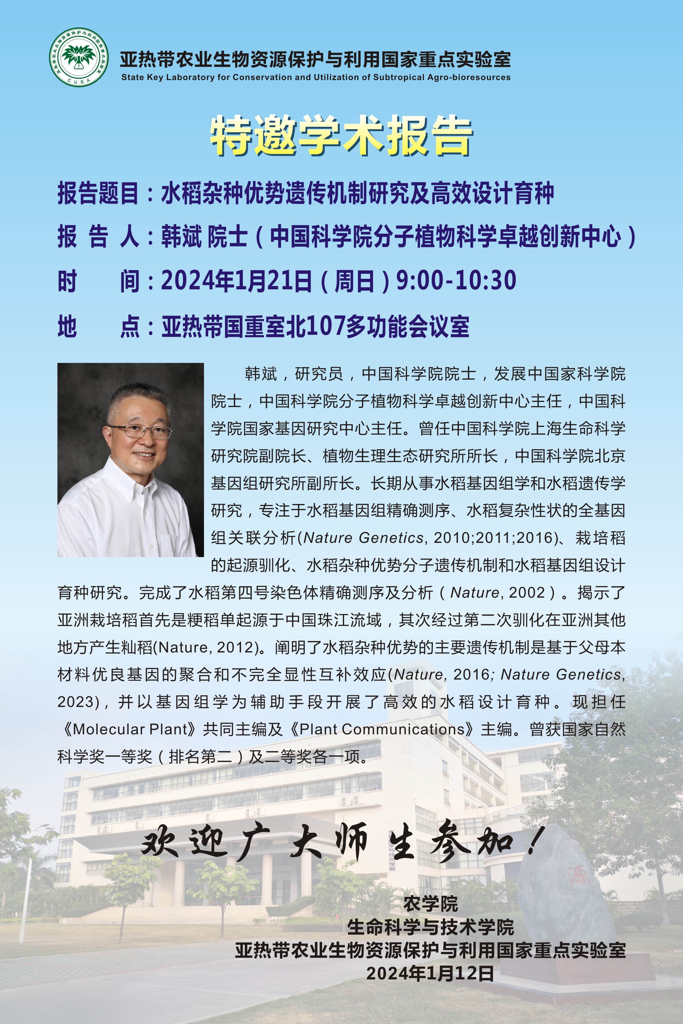 主講人 韓斌 院士(中國科學院分子植物科學卓越創新中心) 地址 亞熱帶國重室北107多功能會議室