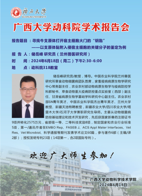 動物科學技術學院學術報告會:尋找牛支原體打開宿主細胞大門的“鑰匙”——以支原體黏附入侵宿主細胞的關鍵分子的鑒定為例